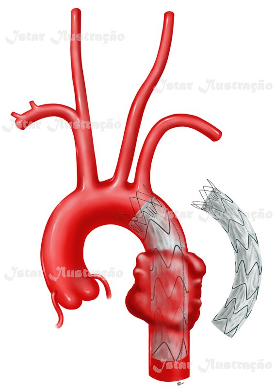 Stent colocado em artéria aorta para tratamento de aneurisma