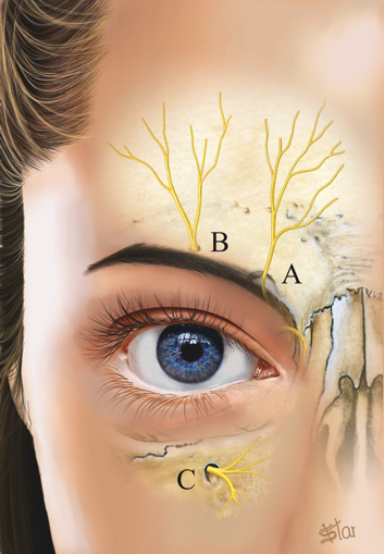 Ramos do Nervo Oftálmico. Ilustração do livro Técnicas Cirúrgicas Ilustradas: Monteiro e Starling